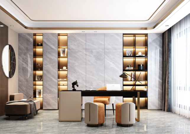 無論是作為居家裝修或是商業應用,900X1800MM大規格瓷磚上墻,因單片面積更大,花色、紋理印花展現更加豐富且飽滿,呈現出來的視覺效果更加立體。