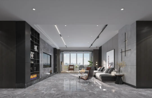 空間結合簡約時尚的家具搭配,無限連紋的線條柔中帶剛,滲透出真實石材的自然韻律,飄然逸動的紋理綿延,山巒疊嶂,橫看成林側成峰,以海納百川之胸懷盡顯磅礴氣勢。