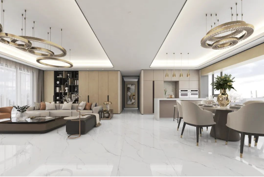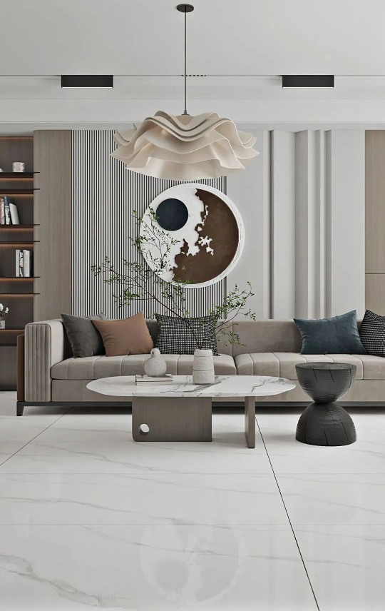 地面以充滿飄逸美感的達(dá)拉斯白進(jìn)行通鋪,如玉的潤(rùn)澤,高雅的氣息,仿佛置身于靜謐的時(shí)空里,靜享歲月安然,盡顯空間之美。