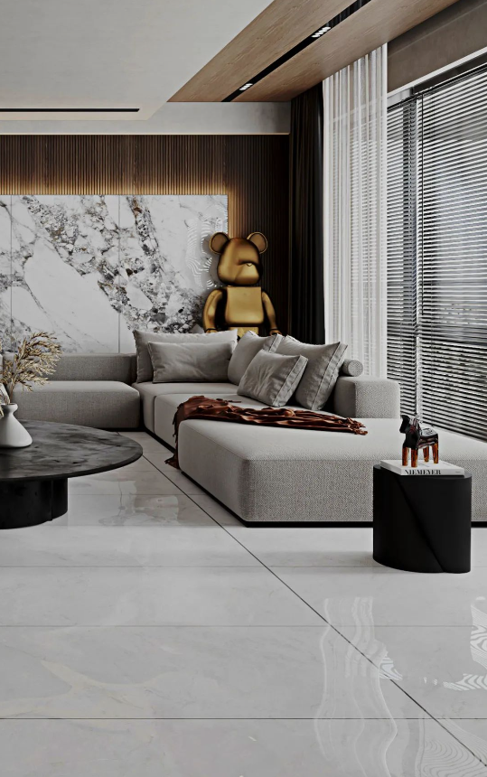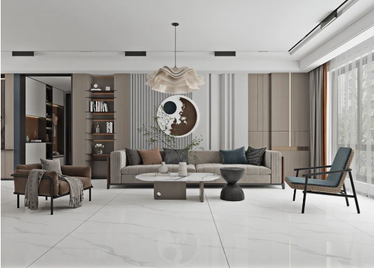 弱化家居框架的拘束,無(wú)限連紋設(shè)計(jì)突破瓷磚的尺寸界限。銀沙灰紋理自然銜接,使整體空間更具視覺(jué)張力,大大地提升家居美感與藝術(shù)氣質(zhì)。