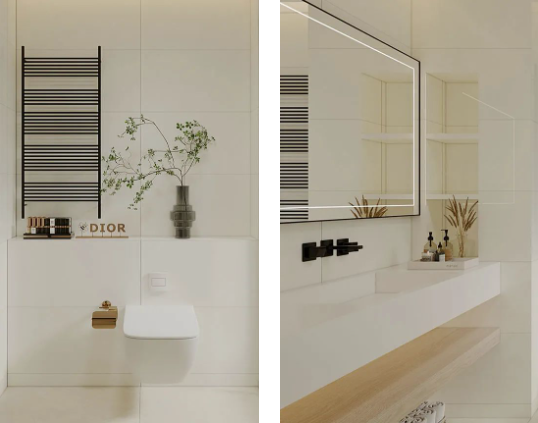 暖色系的浴室,低飽和度的色溫,克羅伊淺灰色調(diào)余韻深遠(yuǎn),上墻應(yīng)用更溫暖,拂走雜亂思緒,令用戶(hù)心安,提升衛(wèi)浴空間的和諧性與美觀性。