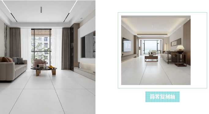 無論是客廳背景墻的一抹大氣,衛(wèi)浴空間中的點睛之筆,還是通鋪地面的流暢延伸,簡奢復(fù)刻釉都能輕松駕馭。它讓藝術(shù)成為生活的