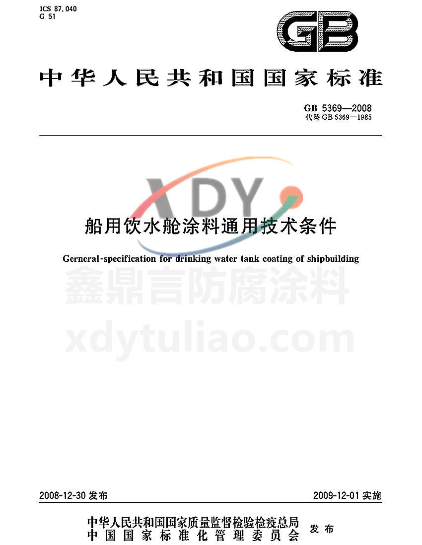 4.4、操作方法 4.4.1、黏度 按GB/T1723-1993中乙法的規定進行。 4.4.2、不揮發物含量 按GB/T1725-2007的規定進行,烘烤溫度為(85-90)℃,烘烤時間為2h,試樣量約為2g。 4.4.3、遮蓋力 按GB/T1726-1979中乙法的規定進行。 4.4.4、干燥時間 按GB/T1728-1979中甲法的規定進行。 4.4.5、涂膜外觀 在自然日光下目視觀察樣板表面有無桔皮、起皺、色斑、顆粒、縮孔等現象,如無則可評定為“正常”。 4.4.6、硬度 按GB/T1730-2007中B法的規定進行。 4.4.7、彎曲試驗 按GB/T6742-2007的規定進行。 4.4.8、耐沖擊性 按GB/T1732-1993的規定進行。 4.4.9、附著力 按GB/T1720-1979規定進行。 4.4.10、耐酸性 按GB/T9274-1988中甲法的規定進行,浸入25%H2SO4溶液中30d。3根鋼棒以至少2根鋼棒一致的結果報出,如出現涂膜病態現象按GB/T1766-2008進行描述。 4.4.11、耐堿性 按GB/T9274-1988中甲法的規定進行,浸入40%NaOH溶液中20d。3根鋼棒以至少2根鋼棒一致的結果報出,如出現涂膜病態現象按GB/T1766-2008進行描述。 5、檢驗規則 5.1、檢驗分類 5.1.1、產品檢驗分出廠檢驗和型式檢驗。 5.1.2、出廠檢驗項目包括涂膜外觀、黏度、不揮發物含量、遮蓋力、干燥時間。 5.1.3、型式檢驗項目包括本標準所列的全部技術要求。在正常生產情況下,硬度、彎曲試驗、耐沖擊性、附著力每月至少檢驗一次。耐酸性、耐堿性每年至少檢驗一次。 5.2、檢驗結果的判定 5.2.1、檢驗結果的判定按GB/T8170中修約值比較法進行。 5.2.2、所有項目的檢驗結果均達到本標準要求時,該試驗樣品為符合本標準要求。 6、標志、包裝、貯存 6.1、標志 按GB/T9750的規定進行。 6.2、包裝 按GB/T13491中一級包裝要求的規定進行。 6.3、貯存 產品貯存時應保持通風、干燥、防止日光直接照射并應隔絕火源,遠離熱源。產品應定出貯存期,并在包裝標志上明示。 過氯乙烯樹脂涂料國家標準GB/T25259-2010 GB/T25259-2010過氯乙烯樹脂涂料標準ICS87.040 G51 GB 中華人民共和國國家標準 過氯乙烯樹脂涂料標準GB/T25259-2010Perchlorovinyl resin coatings 2010-09-26發布 2011-08-01實施 中華人民共和國國家質量監督檢驗檢疫總局 中國國家標準化管理委員會 發布 本標準規定了過氯乙烯樹脂涂料的分類、技術要求、試驗方法、檢驗規 時間:2018/1/24 GB 5369-2008船用飲水艙涂料通用技術條件國家標準 ICS87.040 G51 GB 中華人民共和國國家標準 GB 5369-2008代替GB 5369-1985 船用飲水艙涂料通用技術條件 Gerneneral-specification for drinking wanter tank coating of shipbuilding 2008-12-30發布 2009-12-01實施 中華人民共和國國家質量監督檢驗檢疫總局 中國國家標準化管理 時間:2018/1/21 GB/T 1771-2007色漆和清漆 耐中性鹽霧性能的測定標準 GB/T1771-2007色漆和清漆 耐中性鹽霧性能的測定標準是鑫鼎言防腐涂料照搬GB/T1771-2007《色漆和清漆 耐中性鹽霧性能的測定》紙質版內容。大家可以放心參考。 ICS 87.040 G50 GB 中華人民共和國國家標準 GB/T1771-2007/ISO 7253:1996代替GB/T1771-1991 色漆和清漆 耐中性鹽霧性能的測定Paints and var 時間:2018/1/19 各種防腐涂料的國家相關標準GB 各種防腐涂料的國家相關標準GB 氯化橡膠防腐涂料HG/T2798-1996 氯磺化聚乙烯防腐涂料(雙組分)底漆/面漆 HG/T2661-1995 環氧瀝青防腐涂料(分裝)HG/T2884-1997 彩色涂層鋼板及鋼帶 GB/T12754—2006 紅丹醇酸防銹漆HG/T3346-1999 汽車用底漆 GB/T13493-1992 各色汽車用面漆 GB/T13492-1992 各色酚醛防銹漆HG/ 時間:2018/1/18 氟碳漆噴涂型材標準GB 5237.5-2008 GB 5237.5-2008鋁合金建筑型材 第5部分:氟碳漆噴涂型材 中華人民共和國國家標準 GB 5237.5-2008代替GB 5237.5-2004 鋁合金建筑型材 第5部分:氟碳漆噴涂型材 Wrought aluminum alloy extruded profiles for architecture-Part5:PVDF coating profiles 中華人民共和國國家質量監督檢 時間:2018/1/16 酚醛樹脂防銹涂料國家標準GB/T 25252-2010 GB/T 25252-2010酚醛樹脂防銹涂料標準 ICS 87.040 G51 GB 中華人民共和國國家標準 GB/T 25252-2010 酚醛樹脂防銹涂料Phenolic resin anticorrosive coatings 2010-09-26發布 2011-08-01實施 中華人民共和國國家質量監督檢驗檢疫總局 中國國家標準化管理委員會 發布 本標準規定了酚醛樹脂防銹涂料的要求、試驗 時間:2018/1/13 酚醛樹脂涂料國家標準GB/T 25253-2010 GB/T 25253-2010酚醛樹脂涂料 ICS 87.040 G 51 GB 中華人民共和國國家標準 GB/T 25253-2010 酚醛樹脂涂料標準Phenolic resin coatings 2010-09-26發布 2011-08-01實施 中華人民共和國國家質量監督檢驗檢疫總局 中國國家標準化管理委員會 發布 本標準規定了酚醛樹脂涂料的分類、要求、試驗方法、檢驗規則、標志、包裝和貯存 時間:2018/1/13 氯化橡膠防腐涂料國家標準GB/T 25263-2010 氯化橡膠防腐涂料國家標準GB/T 25263-2010 ICS 87.040 G 51 GB 中華人民共和國國家標準 GB/T 25263-2010 氯化橡膠防腐涂料Chlorinated rubber anticorrosive coatings 2010-09-26發布 2011-08-01實施 中華人民共和國國家質量監督檢驗檢疫總局 中國國家標準化管理委員會 發布 本標準規定了氯化橡膠防腐涂 時間:2018/1/12 地坪涂裝材料國家標準GB/T 22374-2008 GB/T 22374-2008地坪涂裝材料國家標準 中華人民共和國國家標準 GB/T 22374-2008 地坪涂裝材料Floor coatings 2008-09-18發行 2009-05-01實施 中華人民共和國國家質量監督檢驗檢疫總局 中國國家標準化管理委員會 發布 本標準規定了合成樹脂基地坪涂裝材料的術語和定義、產品分類、有害物質限量及物理性能要求、試驗方法、檢驗規則、標志、包裝、運輸與貯 時間:2018/