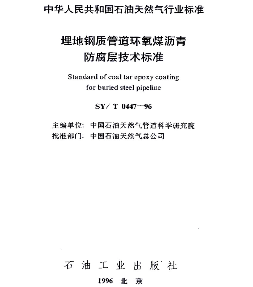 SY/T 4105-2005鋼制儲罐無溶劑聚氨酯涂料內防腐層技術規范 ICS 25.220.60;23.040.10 P 94 備案號:16434-2005 SY 中華人民共和國石油天然氣行業標準 SY/T 4105-2005 鋼制儲罐無溶劑聚氨酯涂料內防腐層技術規范Technical standard of non-solvent polyurethane internal coatings f
